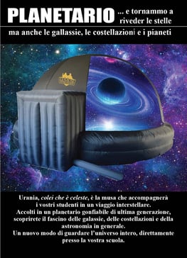 Una nuova lezione tutta da scoprire. Una lezione di astrofisica che vuole condurre gli studenti a scoprire il fascino delle galassie, delle costellazioni. Accolti in un planetario gonfiabile di ultima generazione i ragazzi potranno guardare l'universo direttamente dalla vostra scuola!!!